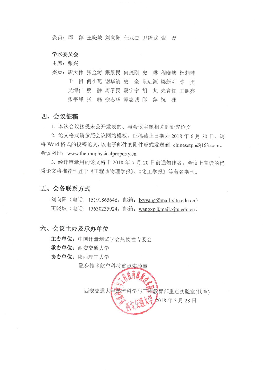 第一届中国热物性学术会议第二轮通知