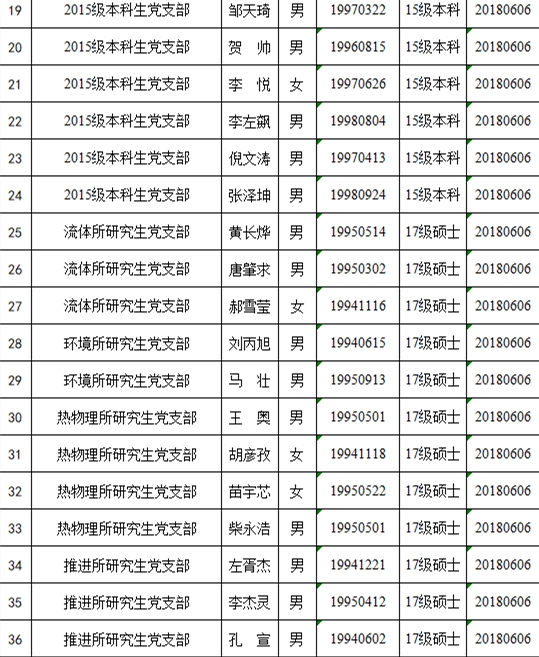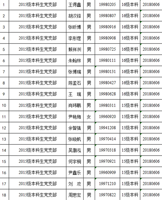 经本人申请,党支部考察,下列同志于2019年6月预备期满,学院各学生党支部拟近期召开支部大会讨论其转正问题。为保证发展党员质量,增强工作透明度,特向党内外群众进行公示。