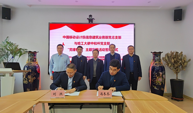 会议最后,双方举行了中国移动设计院信息建筑业务部党总支部、能源学院碳中和能源技术研究所教工党支部“党建合创”主题实践活动签约仪式,中国移动设计院信息建筑业务部党总支部书记刘洪与碳中和能源技术研究所党支部副书记冯冬冬分别代表双方签署支部共建协议。