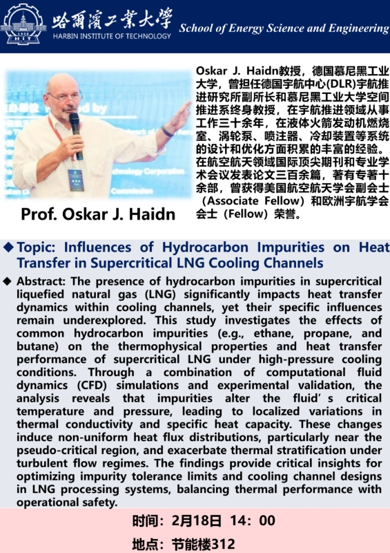 【学术讲座】Influences of Hydrocarbon Impurities on Heat Transfer in Supercritical LNG Cooling Channels