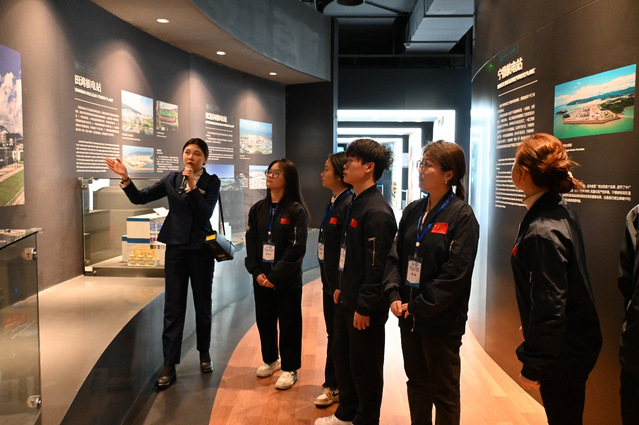 实践团成员首先参观了秦山核电科技展厅,详细了解公司发展历程、企业文化及技术成就。作为我国核电产业发展的开创者,秦山核电通过展厅中的模型、视频及多媒体展示系统,生动地呈现了核电一期、二期和三期工程的建设历程及技术特点,展现了我国核电从无到有、从弱到强的奋斗历程。实践团成员对核能发电的核心技术、环保高效的优势以及核电企业在能源转型中的作用有了更深入的认识。