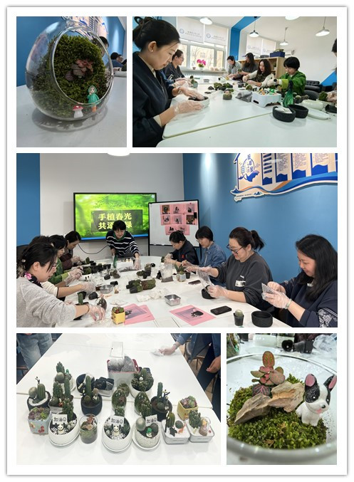 (孙璐/文)风雪交加,也把春天种下。为丰富教职工文化生活,3月12日中午,能源学院工会在节能楼206工会小家举办了“手植春光,共添新绿”绿植微景观DIY活动。活动吸引了学院教职工踊跃参与,大家将大自然浓缩于方寸之间,将绿意盎然的苔藓、形态各异的多肉绿植与精巧的装饰品巧妙搭配,展现了教职工的创意,让教职工们在繁忙工作中感受到自然疗愈的力量。教职工们纷纷表示值此植树节之际,种下春的希望,静待万物盎然,此次制作的绿植微景观为工作空间增添了自然的气息和艺术氛围。