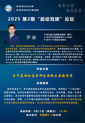 主讲人:罗康,航空航天热物理所教师,哈工大青年科学家工作室学术带头人之一,长期从事电流体传热机理、流动稳定性分析及固液相变等领域基础科研,同时积极探索在芯片散热、柔性器件开发等方向的应用拓展。在相关领域发表SCI论文80余篇,包括Journal of Fluid Mechanics 6篇,Physical Review E/Fluids 11篇;授权发明专利/登记软件著作权25项;作为第一完成人获科技奖励3项;主持国家级、省部级、航天院所及中国商飞横向课题15项;近年来参与承办学术会议4场,做国际/国内学术会议邀请报告10余次,担任《Physica Scripta》等4本期刊编委或特刊编辑。